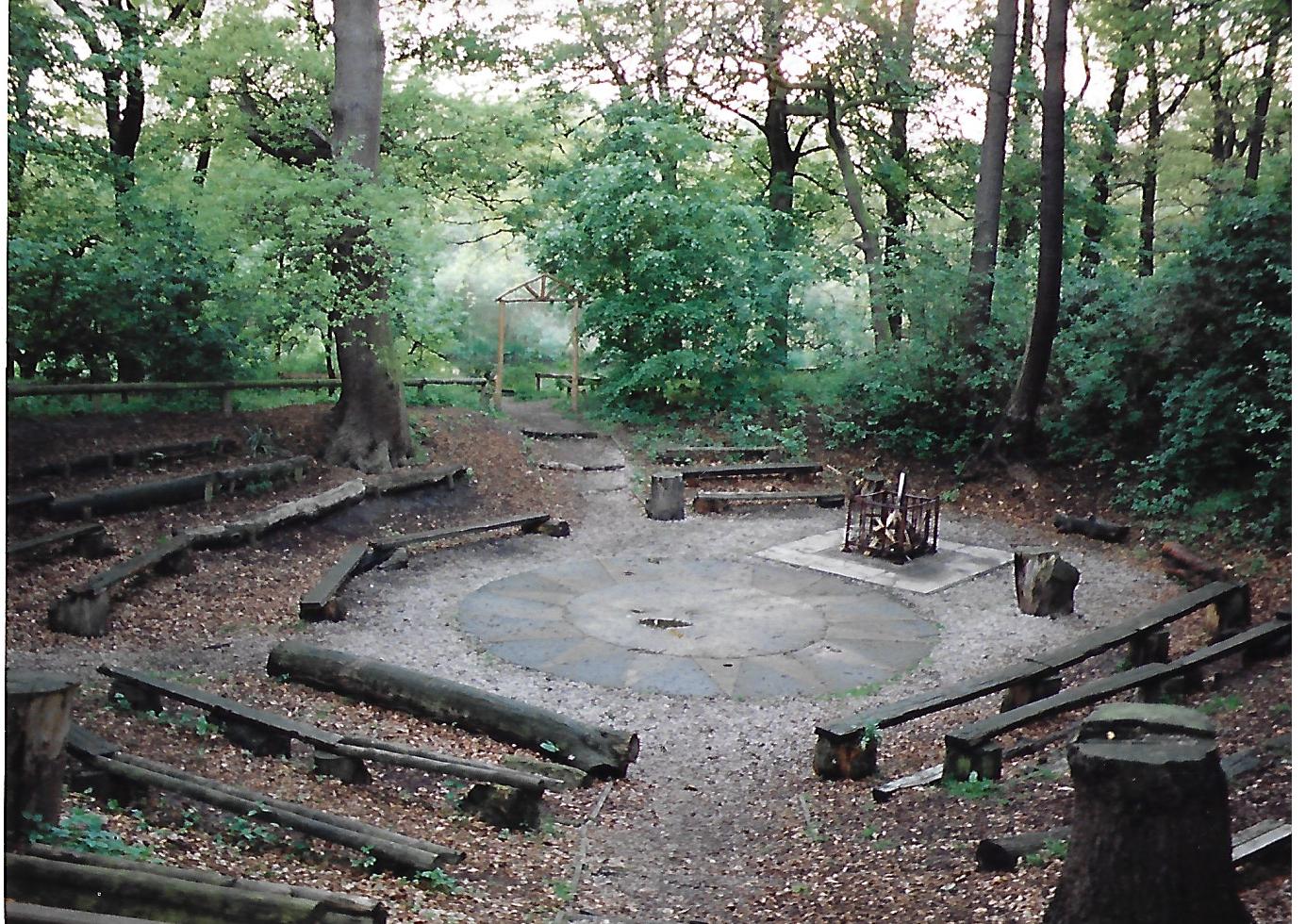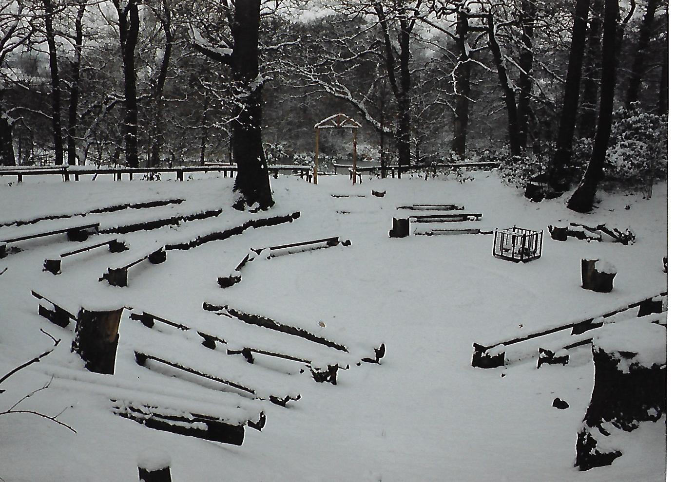 Camp fire circle in Summer looking towards Parker’s PoolCamp fire Circle in Winter – deep and crisp and even!Camp Fire circle in spring 2009 – before refurbishment of seats with railway sleepersCamp fire circle in 2009 with chapel space behind the circle – Parker’s Pool to the top left